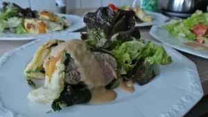 Recept på helstekt fläskfilé, klyftpotatis och god bearnaisesås. Denna rätt är tacksam att bjuda på och det går lätt att anpassa mängden till flera middagsgäster.