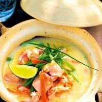 En god och snabblagad gryta med räkor och lax. Innehåller bland annat: Citrongräs och Ingefära