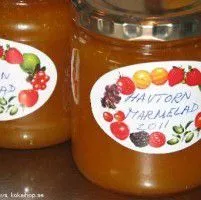 Härligt recept på havtornsmarmelad, marmeladen är gott till bland annat skorpor, rostat bröd, knäckebröd, glass, ostkex och till dessertostar, med detta recept blir det cirka 6-7 deciliter. Innehåller bland annat: Syltsocker och Natriumbensoat