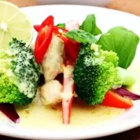 Smaskigt och snabbt recept på en läcker thaigryta med kyckling som serveras med råris, broccoli och paprika, denna gryta passar för dig som äter enligt isodieten. Innehåller bland annat: kokosmjölk och broccoli