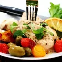 Smarrigt och smidigt recept på ugnsstekt kyckling med jordärtskocka, denna läckra maträtt passar lika bra till vardags som till fest. Innehåller bland annat: körsbärstomater och oliver