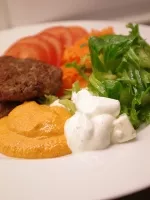 Köttfärsbiffar passar fint till kokt potatis och varma såser som svampsås - eller till sallad och kall sås som tzatziki.
