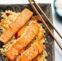 Smaskigt recept på laxfilé med bland annat aprikoser, citronsaft, bulgur och yoghurt, i detta receptet serverar man även maträtten med sallad. Innehåller bland annat: laxfiléer och Bulgur