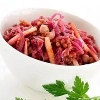 Smarrigt recept på en färgstark rödkålsgryta med linser och bönor som går både snabbt och enkelt att slänga ihop, detta receptet passar lika bra till lunch som till förrätt i mindre portioner. Innehåller bland annat: Rödlök och Rödkål