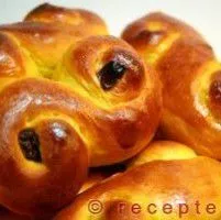 Klassiskt recept på lussebullar med saffran och russin. Innehåller bland annat: Socker eller vit sirap