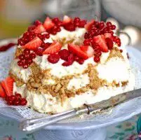 Smarrigt recept på en läcker tårta som passar lika bra på sommaren som på vintern, denna tårta har en seg marängbotten och en fyllning som består av bland annat jordgubbar och italiensk mascarponekräm. Innehåller bland annat: jordgubbar och äggvitor