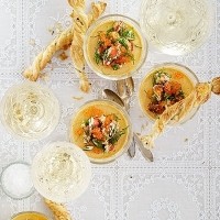 Spännande och annorlunda recept på en läcker förrätt som passar utmärkt till nyårsmiddagen, i detta recept blandas bland annat vispgrädde, gelatinblad, sparris och kräftstjärtar för att ge sparrispannacottan sin smak och färg. Innehåller bland annat: Gelatinblad och Sparris, djupfryst tinad