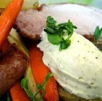 Helstekt fläskytterfilé med rostade rotfrukter och