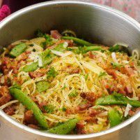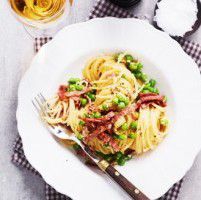 En lite matigare och lyxigare variant av den klassiska carbonaran. Med rökt sidfläsk, vit matlagningsvin, parmesanost m.m. blir detta väldigt smaskigt! Innehåller bland annat: Rökt sidfläsk och Vitt matlagningsvin