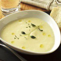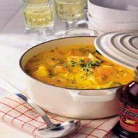 En underbar fisksoppa som får en fin smak av timjan. Innehåller bland annat: Blandad fiskfilé och Små gula lökar